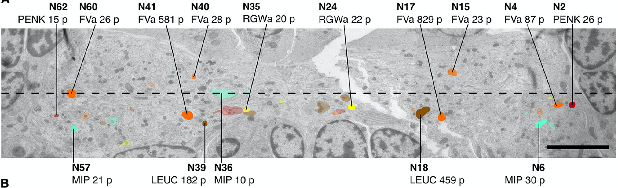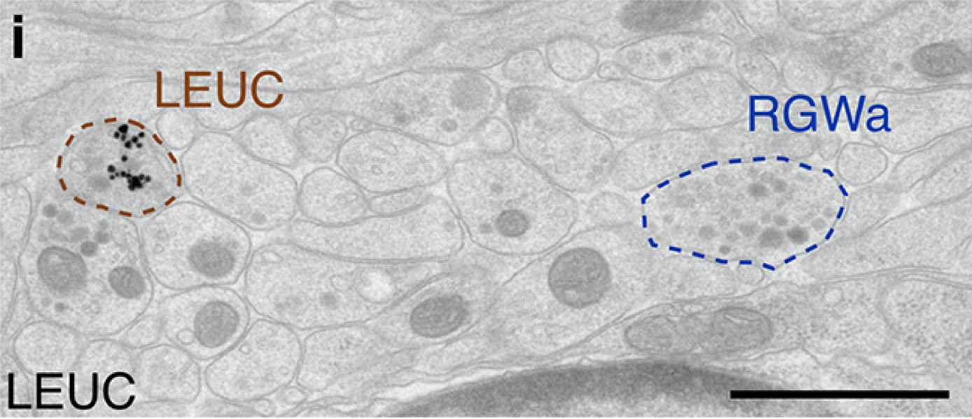 Multiplex immunogold for neuropeptides in the EM volume